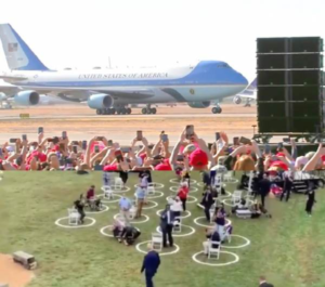 The top half of the photo is a Trump crowd greeting p The President and the bottom half is a Biden campaign stop. How does the saying go? “A picture is worth a thousand words.”